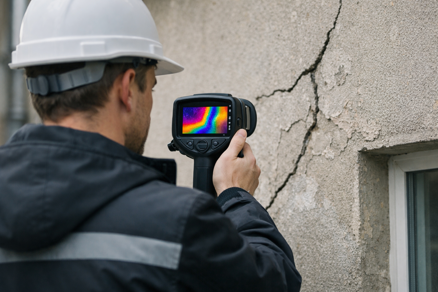 Une inspection par caméra thermique dans le cadre de fissures en façade permet de mettre en évidence plusieurs problématiques :